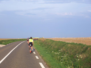 Through all the second half of the route other riders would seem to appear out of nowhere, ride with me for a while and then disappear. Another weird experience was riding with one group of riders, and coming to a town or intersection only to find I was riding with someone else. Very few of the stragglers spoke english and in my state I could not work out even the most rudimentary french. When I did encounter some english speaking riders somewhere between Carhaix and Loudeac I'm afraid I chatted like a canary. I hope I wasn't too annoying, but I was feeling pretty lonely at that point and needed someone to talk to. But just like the others, those riders seemed to disappear into thin air.