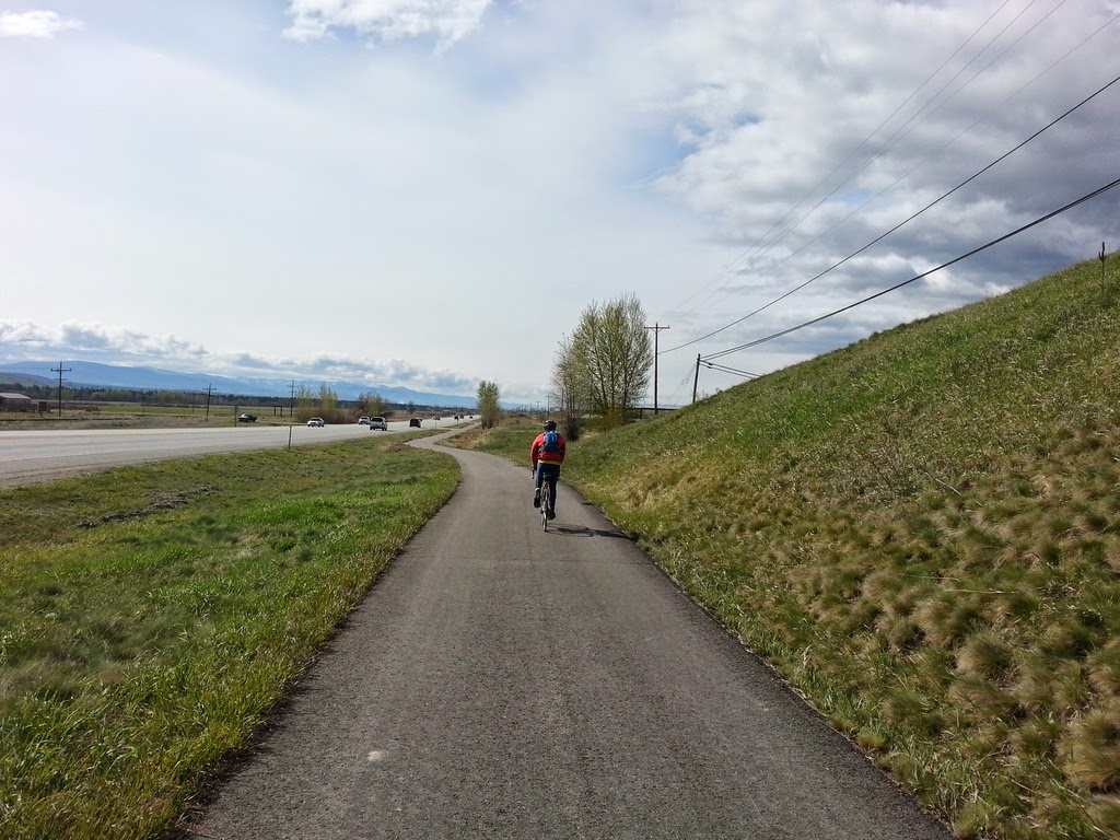 The ride back to Missoula on the path was pretty easy with a slight downhill grade along the Bitterroot River, though the wind did change to be in our faces most of the way in both directions, it was always light and not much of a concern. A few rain clouds over the mountains to the west looked like they might find us, but they never did.